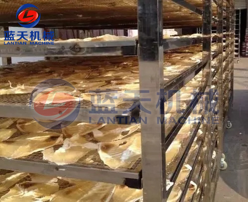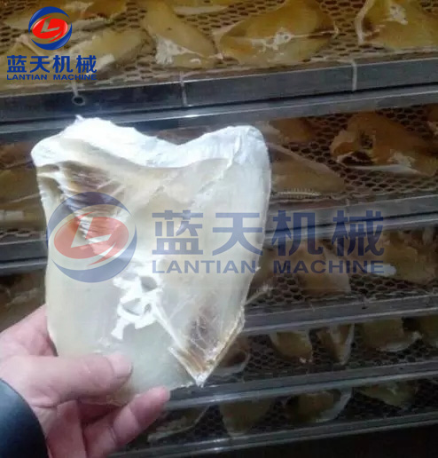 4、烘干:將魚(yú)體洗刷一次,除去沾染的污物,滴干水后,排放于特制的烘干盤上。推進(jìn)熱泵烘干房,開(kāi)啟主機(jī)的控制面板進(jìn)行烘干,烘干過(guò)程由電腦版全自動(dòng)控制,無(wú)需人工值守,一般海魚(yú)的烘干時(shí)間在22——28個(gè)小時(shí)左右。