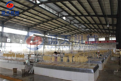 第三步——蒸煮抄條,將豆?jié){加熱時(shí),表面出現(xiàn)一層膜,即可將豆?jié){膜掛至竹竿上(此步稱為抄條),竹竿掛滿后轉(zhuǎn)移至烘車上。抄條時(shí)高溫操作注意操作人員人身安全。