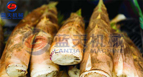 新鮮竹筍切掉老根去皮,清洗干凈后放進蒸煮鍋里蒸煮,蒸煮后撈出過冷然后用壓片機進行壓片脫水。