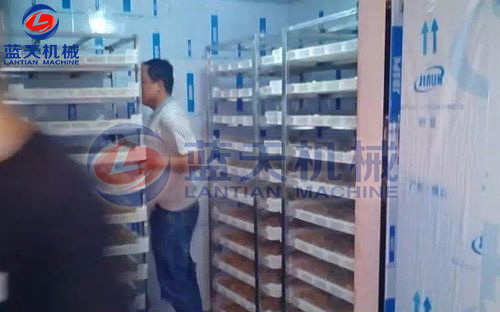 將蒜片均勻鋪放在不銹鋼物料托盤上,溫度控制在55-60°C左右,烘6-8小時。烘干過程中,注意蒜片烘干房的干燥,熱風(fēng)量和排濕氣量要穩(wěn)定,到后期干燥時,由于大蒜纖維細(xì)密且蒜片中液體黏稠,使蒜片水分遷移蒸發(fā)變得緩慢,直至蒜片干燥至含水率約為4-6%以內(nèi)即完成干燥。烘干期間須嚴(yán)格控制好時間和溫度,以免干燥時間過長,溫度過高,使蒜片干色澤、外形及營養(yǎng)價值受損,影響蒜片的品質(zhì)。