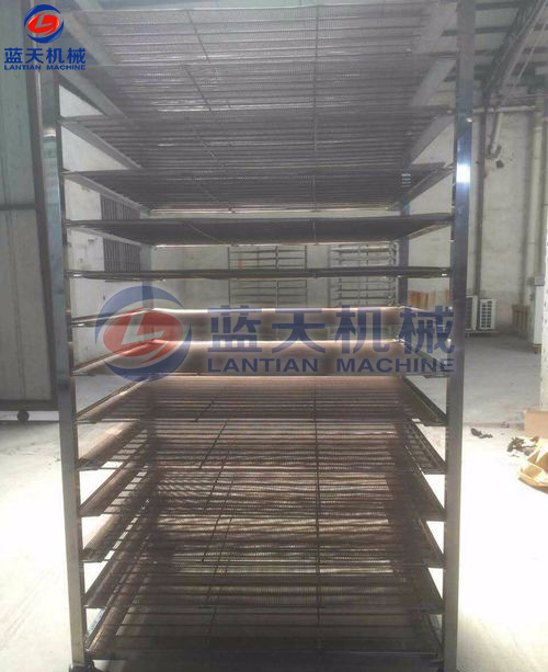 1)將木耳或云耳一層層均勻擺放至特氟龍材質(zhì)的托盤后,放入不銹鋼物料車,推入木耳烘干房,木耳烘干時的溫度應從35℃開始,如果溫度過高,排濕跟不上,容易引起木耳變形。