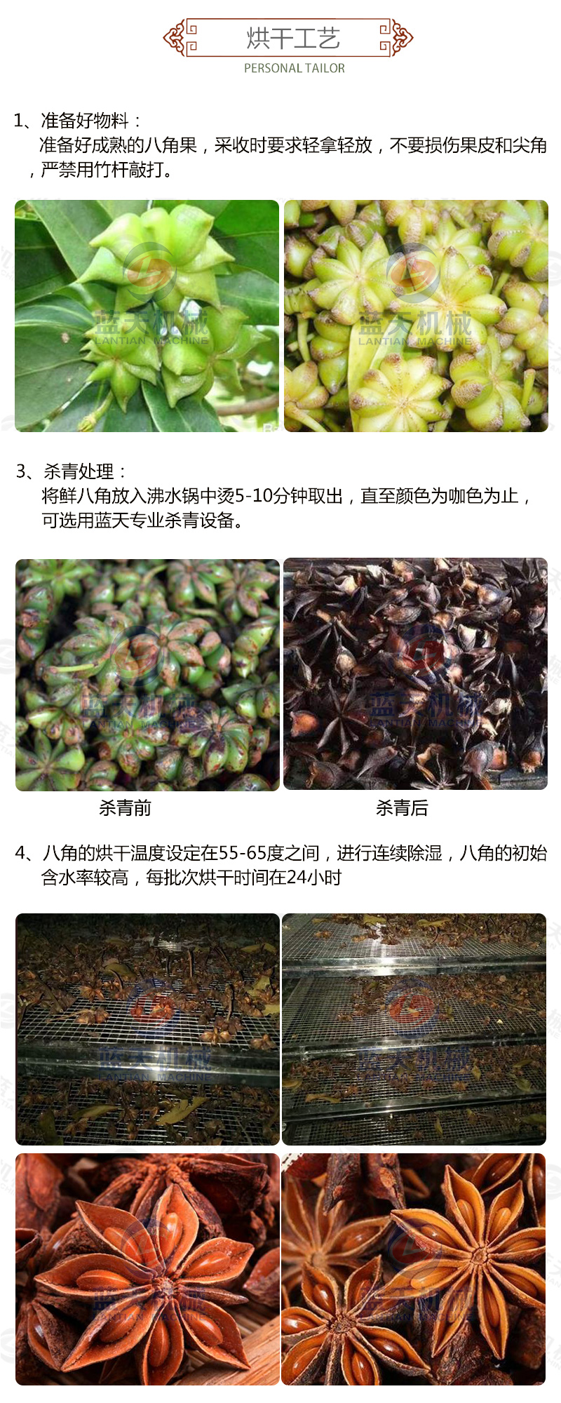 八角需要干燥脫水,老百姓們傳統(tǒng)的干燥就是看天氣,靠太陽曬的方式,或者燒柴的方式較為普遍,這兩種方式的主要問題在于,一,干燥時(shí)間長,一般在4天以上。二,所需干燥場(chǎng)地較大,干燥時(shí)間受天氣制約。第三,不節(jié)能環(huán)保。