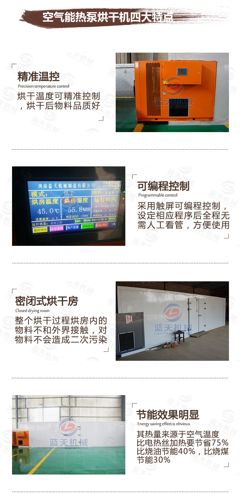 結(jié)合以上問題,新的八角烘干機(jī)出現(xiàn)了,這種設(shè)備是通過少許電能驅(qū)動(dòng)壓縮機(jī)做功,從而使系統(tǒng)中的冷媒吸熱放熱來實(shí)現(xiàn)熱量從高位轉(zhuǎn)移到低位的新能源設(shè)備,是一種氣流干燥設(shè)備,節(jié)能環(huán)保,智能化控制,不再看天氣,不再需要人守著,一鍵啟動(dòng),自動(dòng)烘干,自動(dòng)停機(jī)。