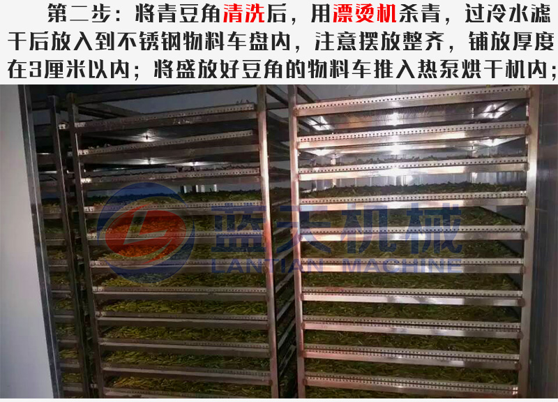使用豆角烘干機(jī)烘干青豆角的烘干流程: