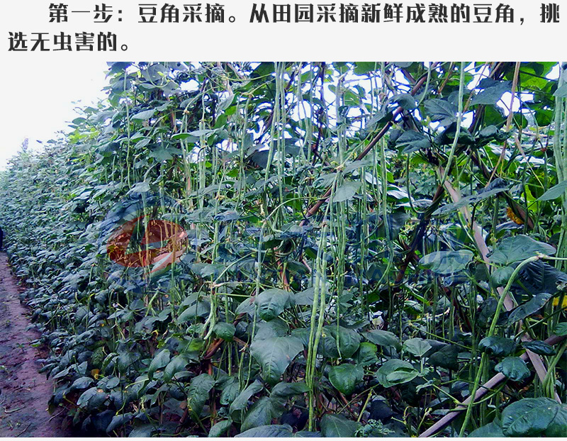 一:豆角采摘。從田園采摘新鮮成熟的豆角,挑選無蟲害的。