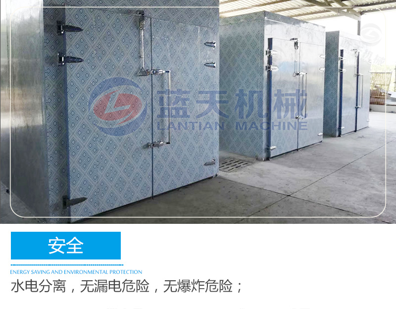 藍(lán)天海產(chǎn)品烘干機采用觸摸屏控制系統(tǒng),可實現(xiàn)多個時段曲線控溫,操作簡單方便。海鮮烘干機吸收空氣的熱量并將其轉(zhuǎn)移到房內(nèi),實現(xiàn)烘干機內(nèi)的溫度提高,配合相應(yīng)的除濕裝置實現(xiàn)海產(chǎn)品的烘干干燥。海產(chǎn)品烘干機設(shè)備由壓縮機-換熱器(內(nèi)機)-節(jié)流器-吸熱器(外機)-壓縮機等裝置構(gòu)成一個循環(huán)系統(tǒng)(主機+烘干機)。冷媒在壓縮機的作用下在系統(tǒng)內(nèi)循環(huán)流動。它在壓縮機內(nèi)完成氣態(tài)的升壓升溫過程(溫度高達115℃),它進入內(nèi)機釋放出高溫?zé)崃考訜岷.a(chǎn)品烘干機內(nèi)空氣,同時自己被冷卻并轉(zhuǎn)化為流液態(tài),當(dāng)它運行到外機后,液態(tài)迅速吸熱蒸發(fā)再次轉(zhuǎn)化為氣態(tài),同時溫度下降至零下20℃-30℃,這時吸熱器周邊的空氣就會源源不斷地將熱量傳遞給冷媒。冷媒不斷地循環(huán)就實現(xiàn)將空氣中的熱量搬運到海鮮烘干機內(nèi)加熱機內(nèi)空氣溫度,從而實現(xiàn)能量的幾倍增長,消耗一度電產(chǎn)生的熱量相當(dāng)于傳統(tǒng)電熱絲的4倍以上,達到效率高節(jié)能的效果。
