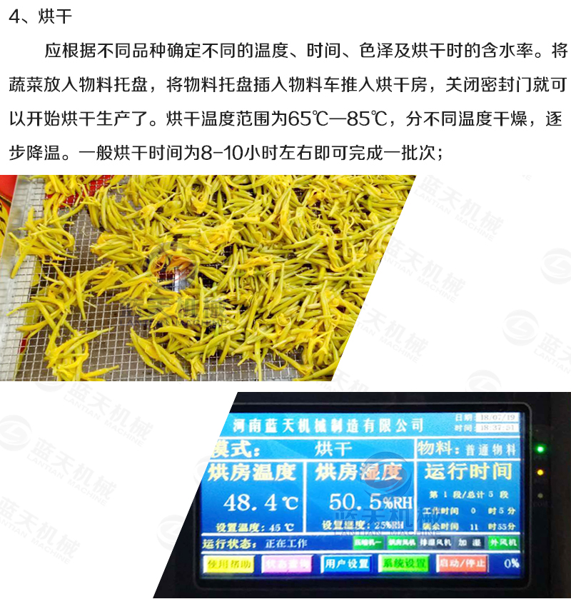 蔬菜烘干機脫水速度快,而且烘干出來的效果好,是因為蔬菜烘干設備在烘干時提供的風為熱風,溫度可以根據(jù)客戶烘干的物料進行相應的調(diào)整,智能控制面板,方便快捷準確。