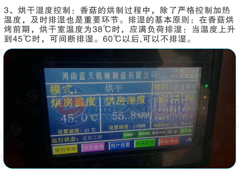 (3)烘干質量好——蘑菇烘干機裝置中的干燥介質是在封閉的空間循環(huán);不受外界氣候條件的影響,一年四季在同一條件下運行,所以烘干干燥的質量非常良好。