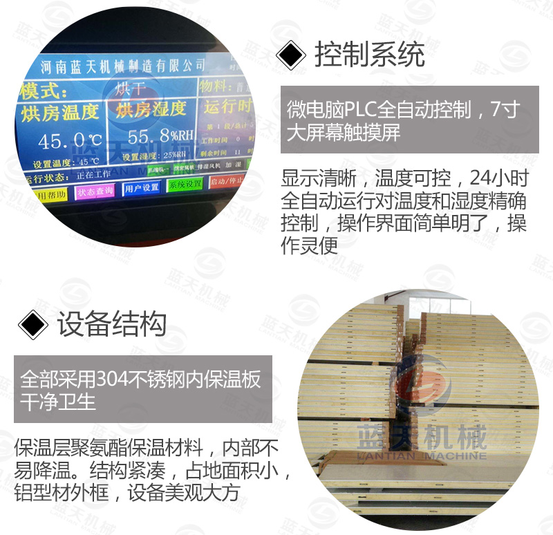 (6)先進的合理的烤房結構,合理的熱風循環(huán)系統(tǒng),保證烘干機內的每處受熱都均勻,品質一樣的好