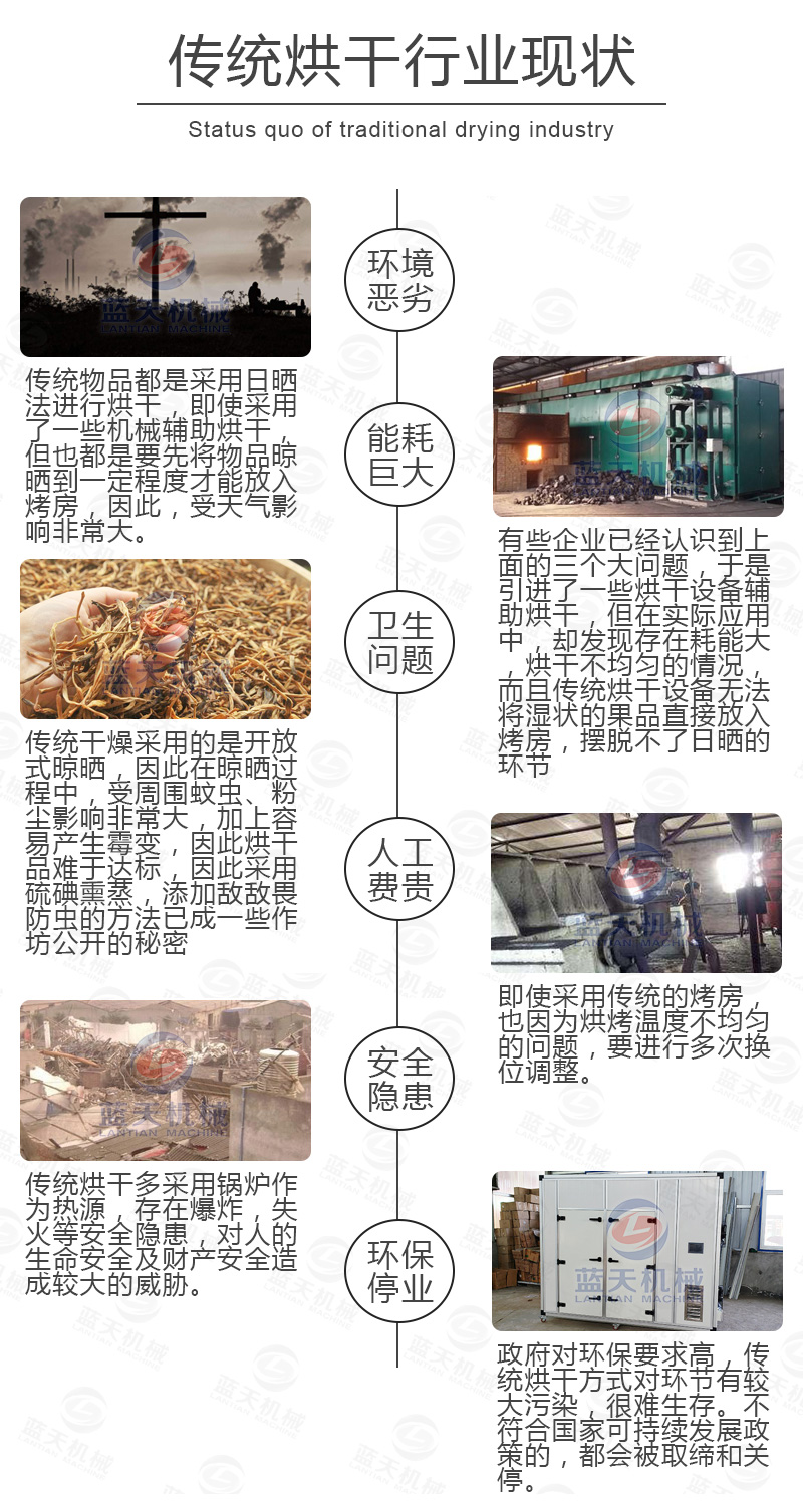 (7)設備運行沒有三廢的排放,不需要鍋爐或者燒煤燒柴,設備主要是吸收空氣中熱量對物料進行烘干,真正實現節(jié)能生產。
